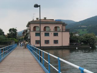 Unser Hotel “Punta del Est” wurde von Michael Fohrer als Geheimtip empfohlen. Das Hotel ist mit seinen 3 Sternen für italienische Verhältnisse recht gut eingerichtet, es liegt direkt am See und, dies ist der eigentliche Geheimtip, bietet ein phantastische Küche sowie einen sehr aufmerksamen und familiär geführten Gastronomiebetrieb. Zum Frühstück und zum Abendbrot saßen wir auf einer kleinen Terasse direkt am See. Neben dem Hotel befindet sich noch ein kleiner Park, dieser wird aber leider auch als Parkplatz genutzt. Besonders am Wochenende war das Restaurant mehr als gut besucht. Zeitig schlafen? Nicht möglich! Italiener reden nun mal gern!